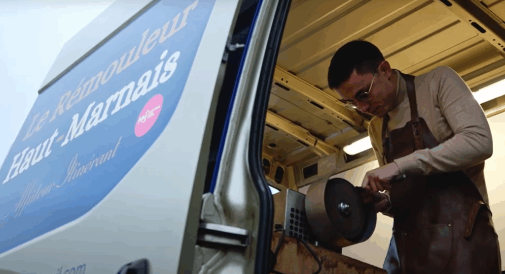 Créée en février 2024, Le Rémouleur Haut-Marnais est une entreprise unipersonnelle à responsabilité limitée (EURL) installée dans une camionnette aménagée en atelier mobile. Ainsi, Hugo se déplace directement chez ses clients, leur offrant un service pratique et de qualité. Une mobilité qui permet non seulement de répondre efficacement aux besoins des professionnels, mais aussi de recréer du lien. « Les gens sont contents parce que ça redynamise le centre des villages. »